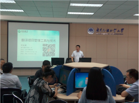 2016年7月9-10日,瑞科翻譯公司董事長(zhǎng)劉克超應(yīng)邀為廣東省翻譯技術(shù)與本地化研究生暑期學(xué)校為近百名翻譯專業(yè)青年骨干教師和研究生教授了兩天有關(guān)《翻譯項(xiàng)目管理工具與技術(shù)》的課程。