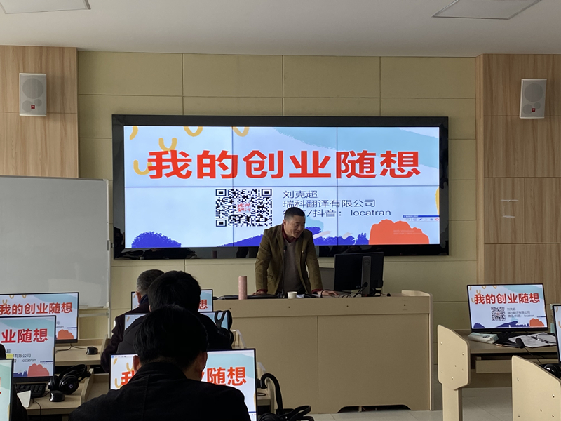 瑞科翻譯公司董事長劉克超以《我的創(chuàng)業(yè)隨想》為題,與大家分享了從一名工科生走上翻譯和創(chuàng)業(yè)的道路以及公司經(jīng)營的心得體會,并對同學們的職業(yè)生涯提出一些建議。分享對即將畢業(yè),尤其是有轉(zhuǎn)換從業(yè)學科或方向的同學裨益良多。